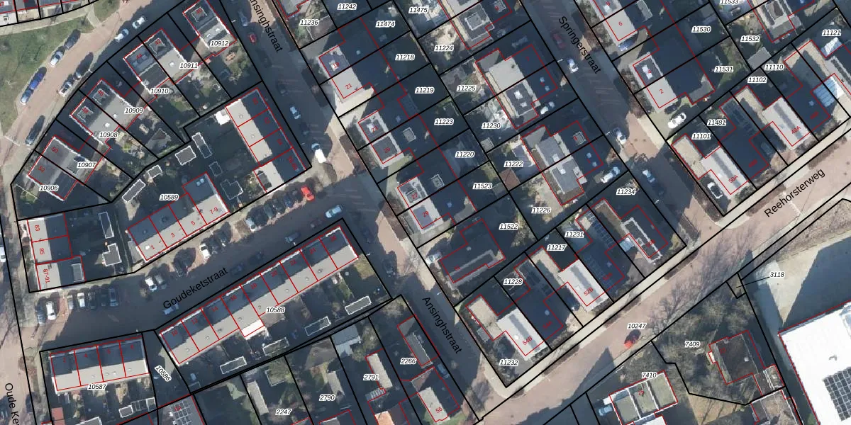 Gebruik de zoekbalk of klik op een perceel voor informatie over de adressen binnen dit perceel.
