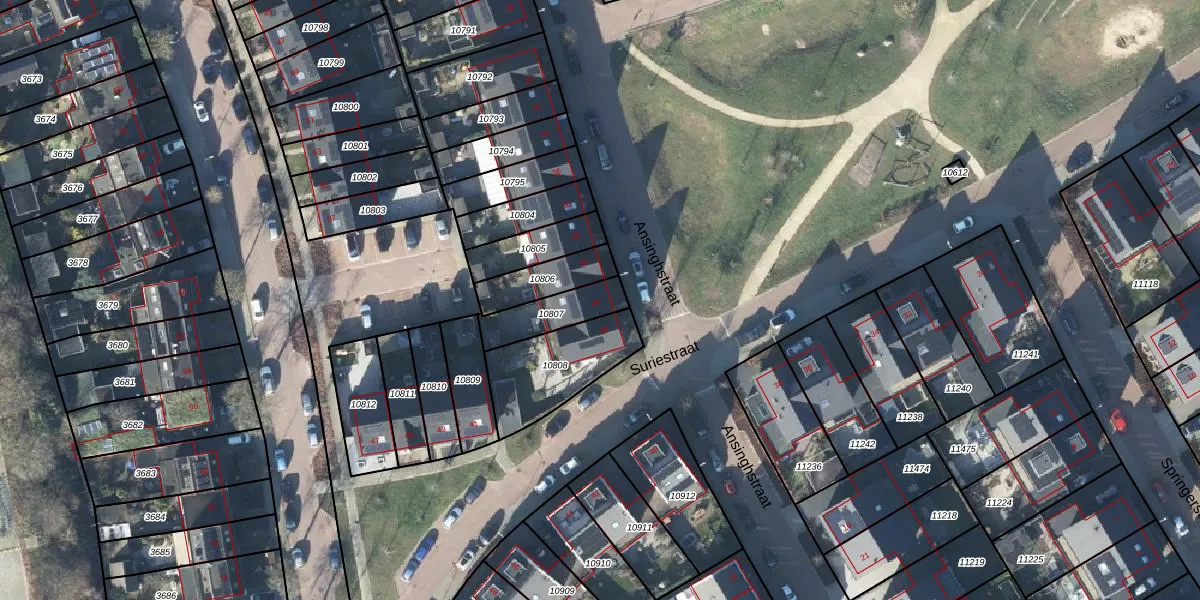 Gebruik de zoekbalk of klik op een perceel voor informatie over de adressen binnen dit perceel.