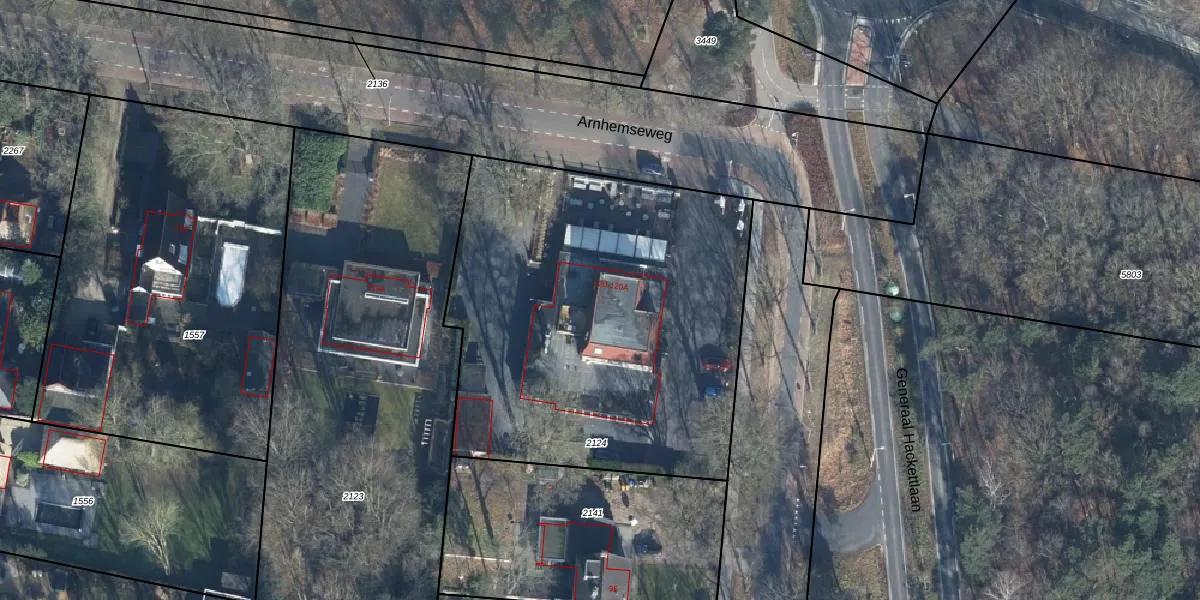 Het perceel waarop Arnhemseweg 120 staat heeft een oppervlakte van 2318 m². Dit is een zeer groot perceel. De perceeloppervlakte wordt geregistreerd door het Kadaster. Gedetailleerde informatie over de maten van dit perceel kunt u vinden in het rapport Kadastrale kaart met maatvoering van Arnhemseweg 120.
