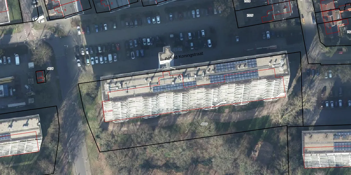 Het perceel waarop Arnold Koningstraat 217 staat heeft een oppervlakte van 5014 m². Dit is een zeer groot perceel. De perceeloppervlakte wordt geregistreerd door het Kadaster. Gedetailleerde informatie over de maten van dit perceel kunt u vinden in het rapport Kadastrale kaart met maatvoering van Arnold Koningstraat 217.