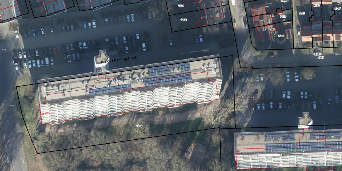 Het perceel waarop Arnold Koningstraat 407 staat heeft een oppervlakte van 5014 m². Dit is een zeer groot perceel. De perceeloppervlakte wordt geregistreerd door het Kadaster. Gedetailleerde informatie over de maten van dit perceel kunt u vinden in het rapport Kadastrale kaart met maatvoering van Arnold Koningstraat 407.