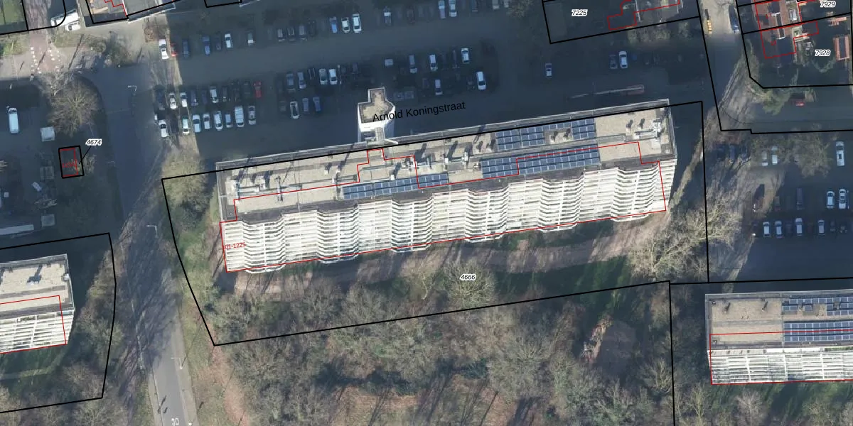 Het perceel waarop Arnold Koningstraat 615 staat heeft een oppervlakte van 5014 m². Dit is een zeer groot perceel. De perceeloppervlakte wordt geregistreerd door het Kadaster. Gedetailleerde informatie over de maten van dit perceel kunt u vinden in het rapport Kadastrale kaart met maatvoering van Arnold Koningstraat 615.