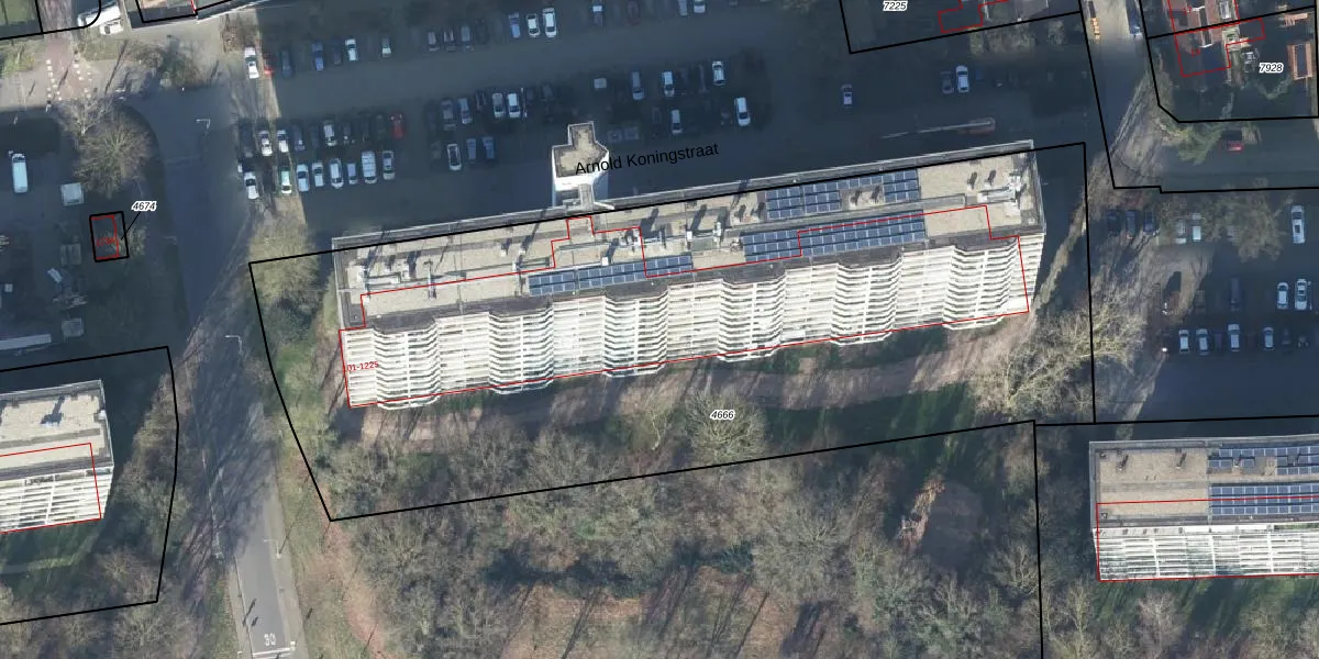Het perceel waarop Arnold Koningstraat 815 staat heeft een oppervlakte van 5014 m². Dit is een zeer groot perceel. De perceeloppervlakte wordt geregistreerd door het Kadaster. Gedetailleerde informatie over de maten van dit perceel kunt u vinden in het rapport Kadastrale kaart met maatvoering van Arnold Koningstraat 815.