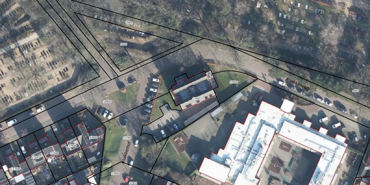 Asakkerhof 5 is gelegen op kadastraal perceel EDE01K17603. Deze kadastrale aanduiding is uniek en wordt gebruikt door het Kadaster om eigendomsrechten en andere zakelijke rechten vast te leggen. Het perceel maakt onderdeel uit van de kadastrale gemeente Ede.