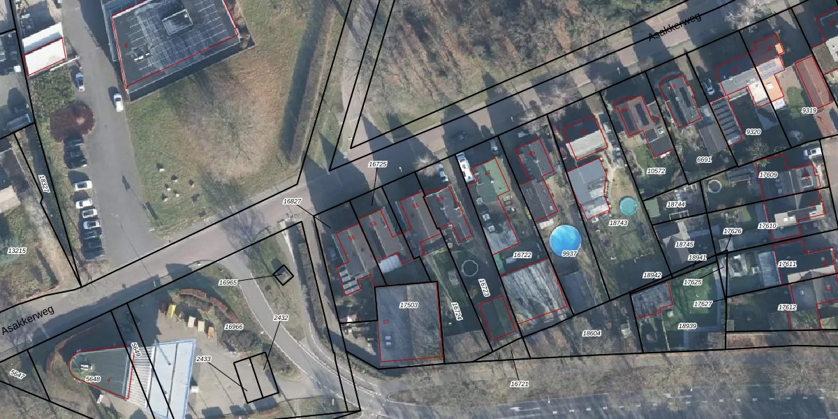 Het perceel waarop Asakkerweg 51 staat heeft een oppervlakte van 394 m². Dit is een groot perceel. De perceeloppervlakte wordt geregistreerd door het Kadaster. Gedetailleerde informatie over de maten van dit perceel kunt u vinden in het rapport Kadastrale kaart met maatvoering van Asakkerweg 51.