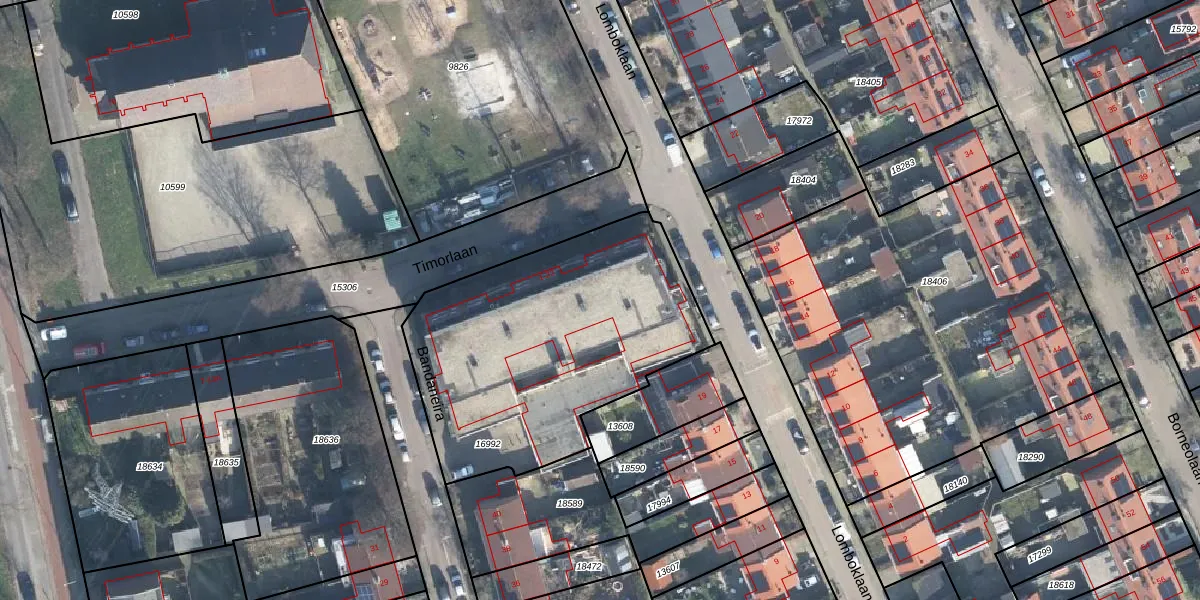 Het perceel waarop Bandaneira 20 staat heeft een oppervlakte van 1425 m². Dit is een zeer groot perceel. De perceeloppervlakte wordt geregistreerd door het Kadaster. Gedetailleerde informatie over de maten van dit perceel kunt u vinden in het rapport Kadastrale kaart met maatvoering van Bandaneira 20.