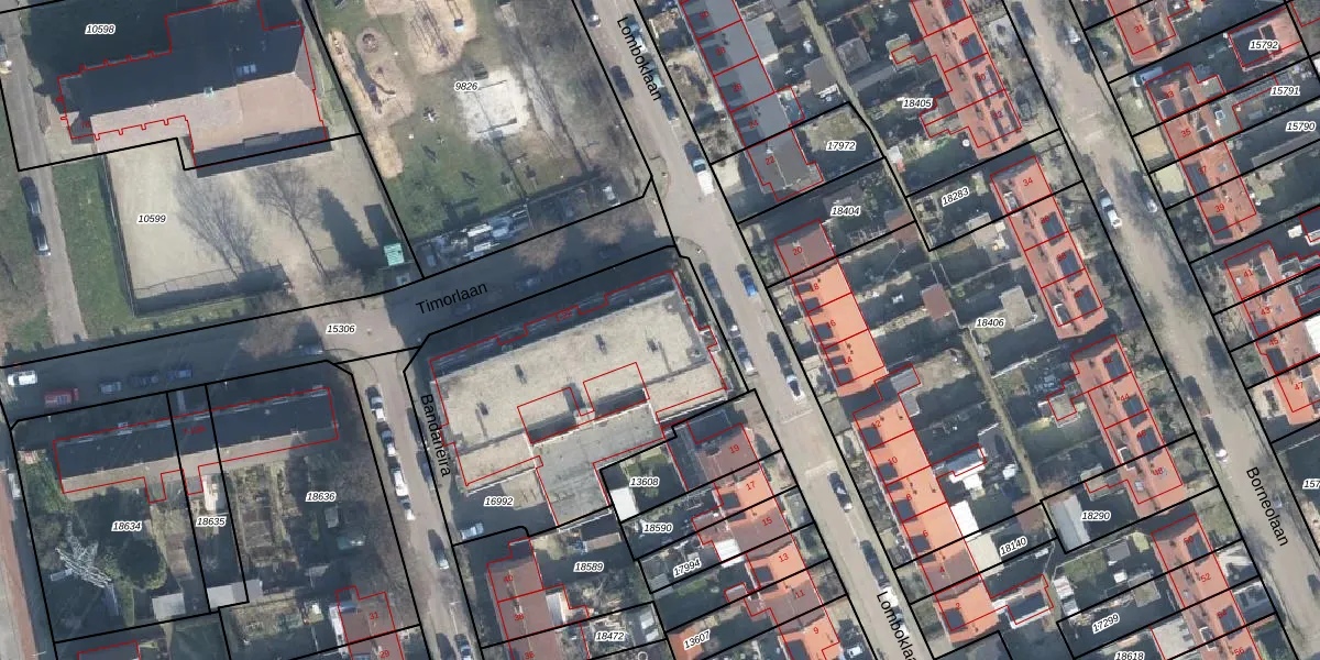 Het perceel waarop Bandaneira 21 staat heeft een oppervlakte van 1425 m². Dit is een zeer groot perceel. De perceeloppervlakte wordt geregistreerd door het Kadaster. Gedetailleerde informatie over de maten van dit perceel kunt u vinden in het rapport Kadastrale kaart met maatvoering van Bandaneira 21.