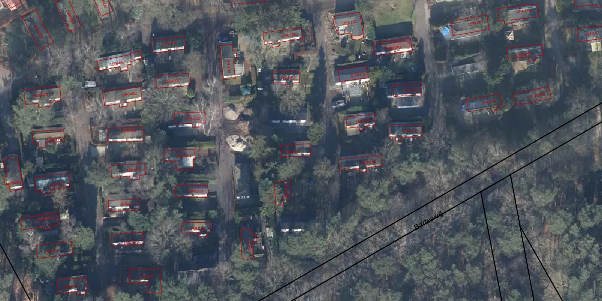 Het perceel waarop Barteweg 15-R-190 staat heeft een oppervlakte van 11,8 ha. Dit is een zeer groot perceel. De perceeloppervlakte wordt geregistreerd door het Kadaster. Gedetailleerde informatie over de maten van dit perceel kunt u vinden in het rapport Kadastrale kaart met maatvoering van Barteweg 15-R-190.