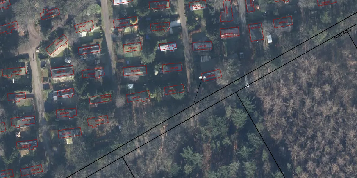 Het perceel waarop Barteweg 15-R-147 staat heeft een oppervlakte van 11,8 ha. Dit is een zeer groot perceel. De perceeloppervlakte wordt geregistreerd door het Kadaster. Gedetailleerde informatie over de maten van dit perceel kunt u vinden in het rapport Kadastrale kaart met maatvoering van Barteweg 15-R-147.