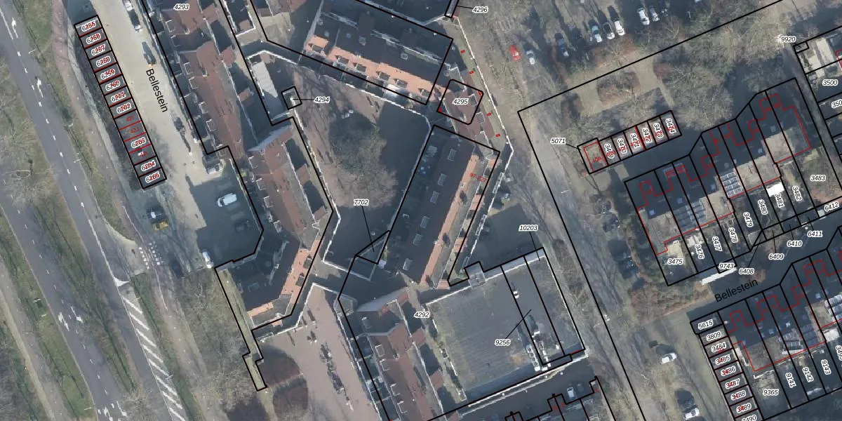Het perceel waarop Bellestein 103 staat heeft een oppervlakte van 1898 m². Dit is een zeer groot perceel. De perceeloppervlakte wordt geregistreerd door het Kadaster. Gedetailleerde informatie over de maten van dit perceel kunt u vinden in het rapport Kadastrale kaart met maatvoering van Bellestein 103.