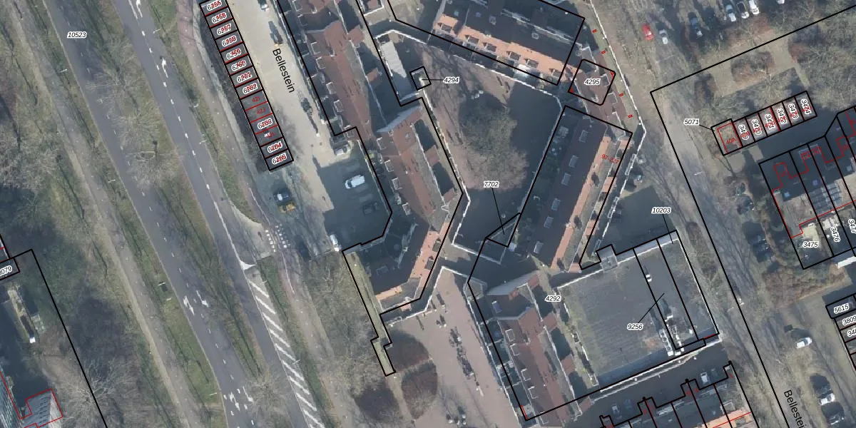 Het perceel waarop Bellestein 121 staat heeft een oppervlakte van 2308 m². Dit is een zeer groot perceel. De perceeloppervlakte wordt geregistreerd door het Kadaster. Gedetailleerde informatie over de maten van dit perceel kunt u vinden in het rapport Kadastrale kaart met maatvoering van Bellestein 121.
