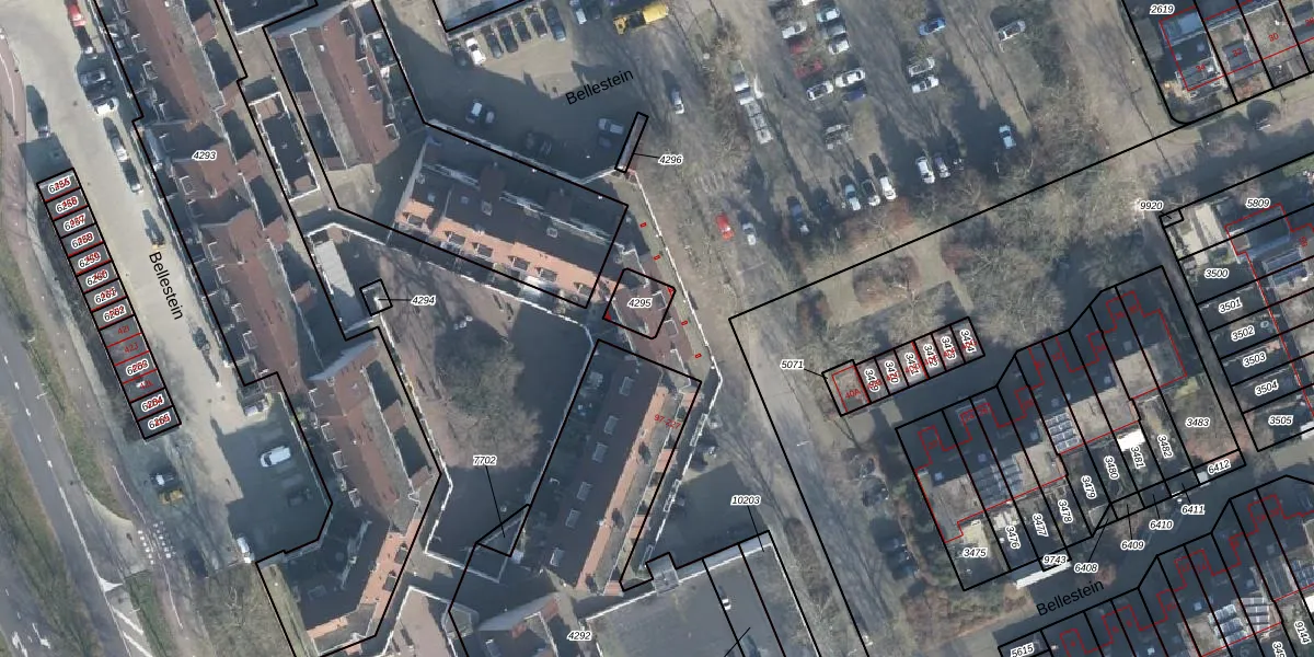 Het perceel waarop Bellestein 203 staat heeft een oppervlakte van 72 m². Dit is een klein perceel. De perceeloppervlakte wordt geregistreerd door het Kadaster. Gedetailleerde informatie over de maten van dit perceel kunt u vinden in het rapport Kadastrale kaart met maatvoering van Bellestein 203.