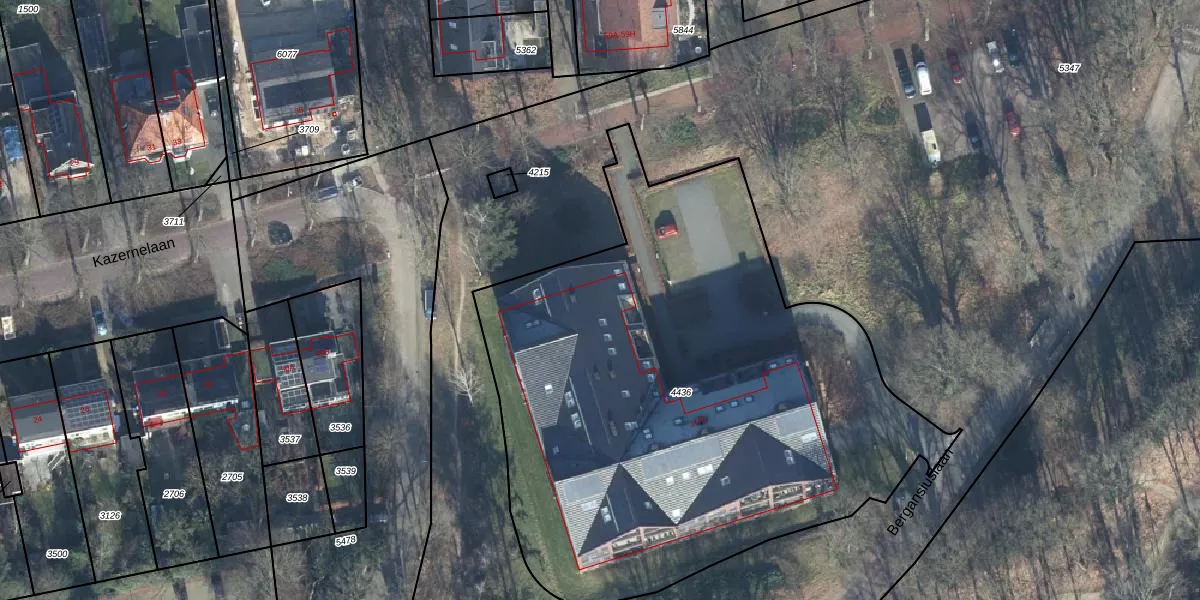 Het perceel waarop Bergansiuslaan 19 staat heeft een oppervlakte van 3532 m². Dit is een zeer groot perceel. De perceeloppervlakte wordt geregistreerd door het Kadaster. Gedetailleerde informatie over de maten van dit perceel kunt u vinden in het rapport Kadastrale kaart met maatvoering van Bergansiuslaan 19.
