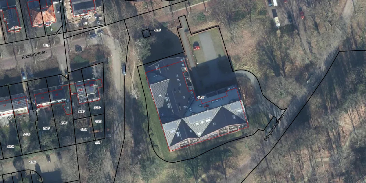 Het perceel waarop Bergansiuslaan 43 staat heeft een oppervlakte van 3532 m². Dit is een zeer groot perceel. De perceeloppervlakte wordt geregistreerd door het Kadaster. Gedetailleerde informatie over de maten van dit perceel kunt u vinden in het rapport Kadastrale kaart met maatvoering van Bergansiuslaan 43.