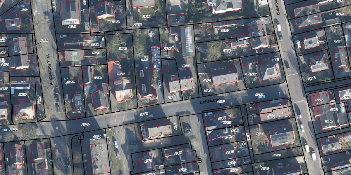Het perceel waarop Bettekamp 14 staat heeft een oppervlakte van 227 m². Dit is een middelgroot perceel. De perceeloppervlakte wordt geregistreerd door het Kadaster. Gedetailleerde informatie over de maten van dit perceel kunt u vinden in het rapport Kadastrale kaart met maatvoering van Bettekamp 14.