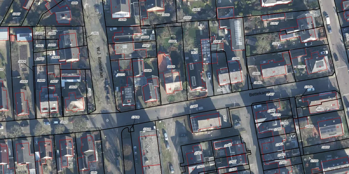 Het perceel waarop Bettekamp 18 staat heeft een oppervlakte van 675 m². Dit is een groot perceel. De perceeloppervlakte wordt geregistreerd door het Kadaster. Gedetailleerde informatie over de maten van dit perceel kunt u vinden in het rapport Kadastrale kaart met maatvoering van Bettekamp 18.