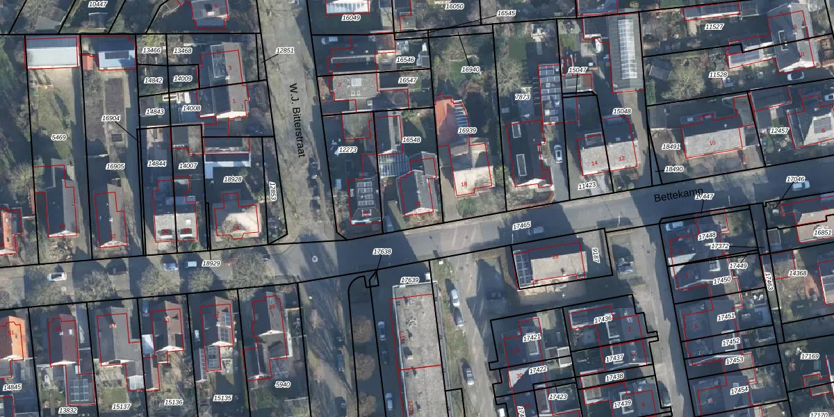 Gebruik de zoekbalk of klik op een perceel voor informatie over de adressen binnen dit perceel.