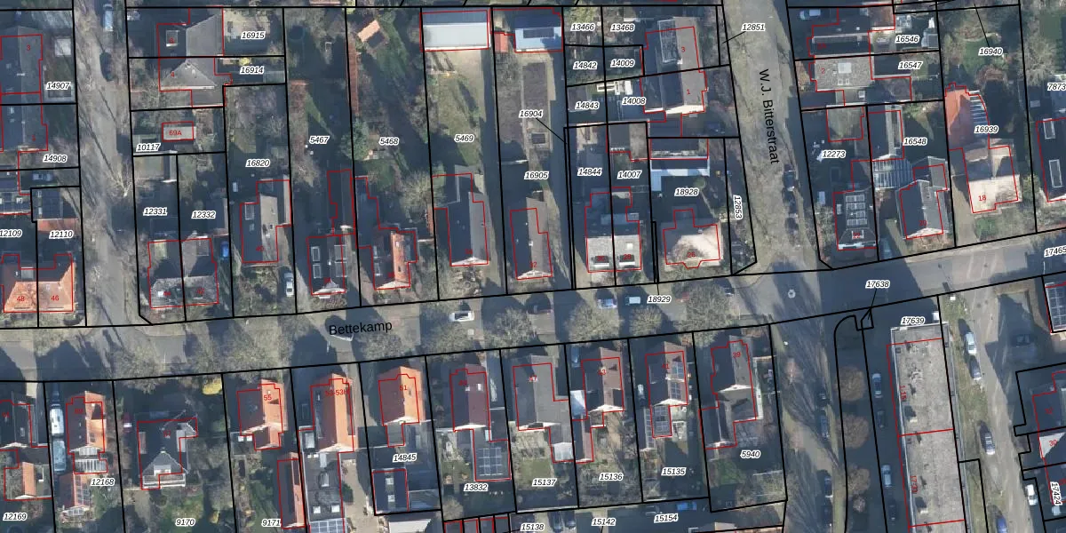 Het perceel waarop Bettekamp 32 staat heeft een oppervlakte van 700 m². Dit is een groot perceel. De perceeloppervlakte wordt geregistreerd door het Kadaster. Gedetailleerde informatie over de maten van dit perceel kunt u vinden in het rapport Kadastrale kaart met maatvoering van Bettekamp 32.
