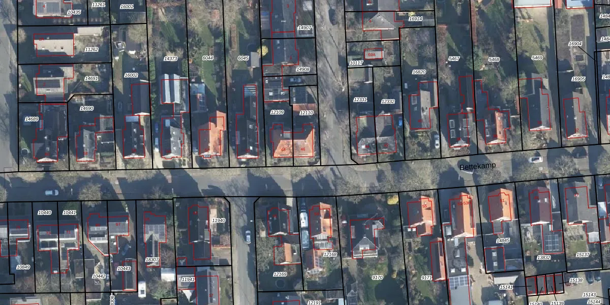 Bettekamp 46 is gelegen op kadastraal perceel EDE01K12110. Deze kadastrale aanduiding is uniek en wordt gebruikt door het Kadaster om eigendomsrechten en andere zakelijke rechten vast te leggen. Het perceel maakt onderdeel uit van de kadastrale gemeente Ede.