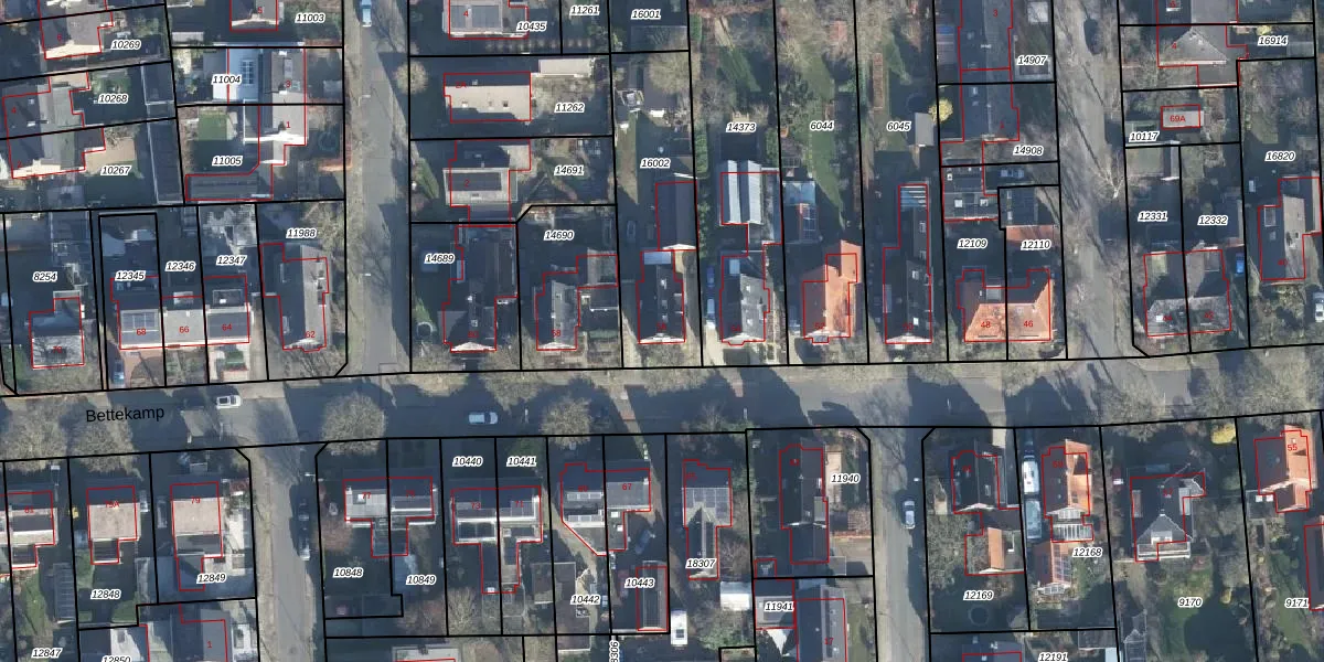 Het perceel waarop Bettekamp 56 staat heeft een oppervlakte van 576 m². Dit is een groot perceel. De perceeloppervlakte wordt geregistreerd door het Kadaster. Gedetailleerde informatie over de maten van dit perceel kunt u vinden in het rapport Kadastrale kaart met maatvoering van Bettekamp 56.