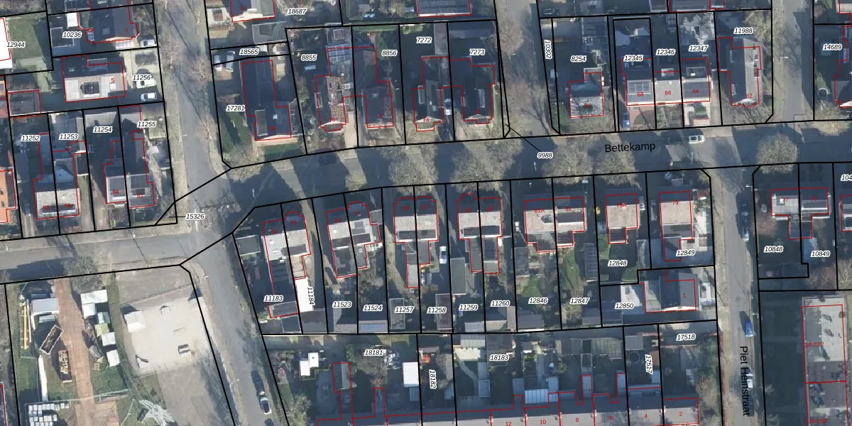Het perceel waarop Bettekamp 87 staat heeft een oppervlakte van 257 m². Dit is een middelgroot perceel. De perceeloppervlakte wordt geregistreerd door het Kadaster. Gedetailleerde informatie over de maten van dit perceel kunt u vinden in het rapport Kadastrale kaart met maatvoering van Bettekamp 87.