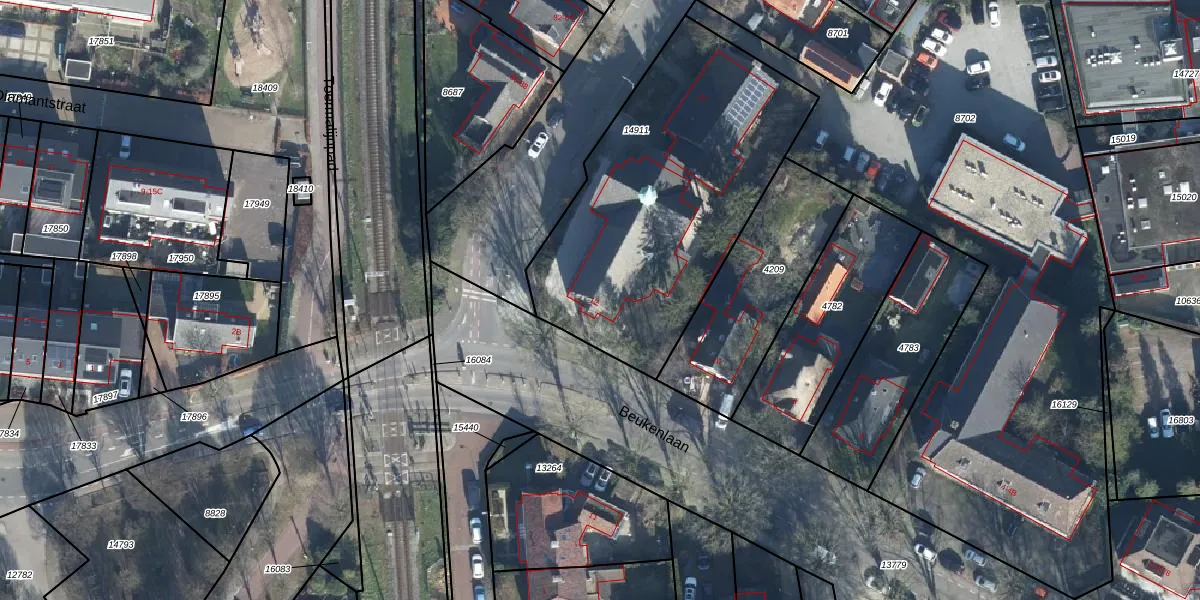 Het perceel waarop Beukenlaan 12 staat heeft een oppervlakte van 1511 m². Dit is een zeer groot perceel. De perceeloppervlakte wordt geregistreerd door het Kadaster. Gedetailleerde informatie over de maten van dit perceel kunt u vinden in het rapport Kadastrale kaart met maatvoering van Beukenlaan 12.