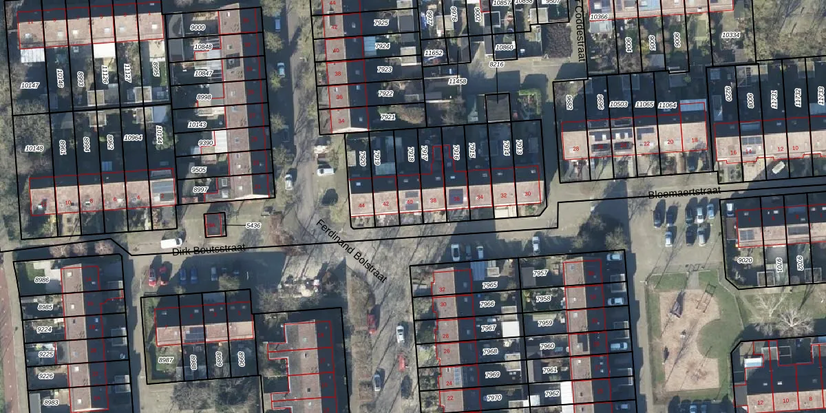 Het perceel waarop Bloemaertstraat 40 staat heeft een oppervlakte van 132 m². Dit is een middelgroot perceel. De perceeloppervlakte wordt geregistreerd door het Kadaster. Gedetailleerde informatie over de maten van dit perceel kunt u vinden in het rapport Kadastrale kaart met maatvoering van Bloemaertstraat 40.