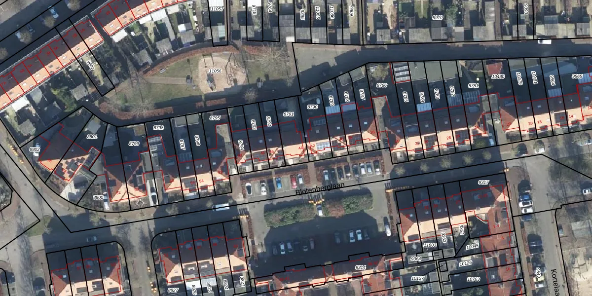 Het perceel waarop Blotenberglaan 44 staat heeft een oppervlakte van 184 m². Dit is een middelgroot perceel. De perceeloppervlakte wordt geregistreerd door het Kadaster. Gedetailleerde informatie over de maten van dit perceel kunt u vinden in het rapport Kadastrale kaart met maatvoering van Blotenberglaan 44.