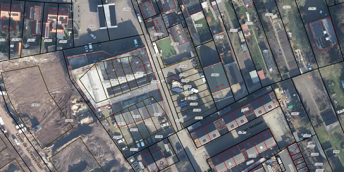 Het perceel waarop Boshof 18 staat heeft een oppervlakte van 82 m². Dit is een klein perceel. De perceeloppervlakte wordt geregistreerd door het Kadaster. Gedetailleerde informatie over de maten van dit perceel kunt u vinden in het rapport Kadastrale kaart met maatvoering van Boshof 18.