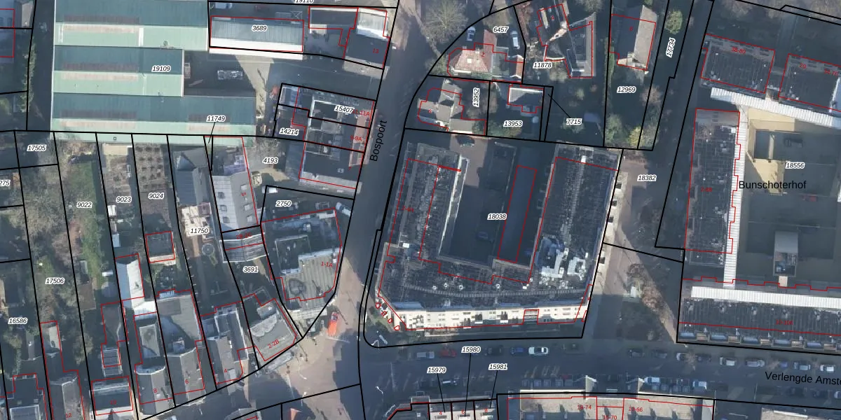 Het perceel waarop Bospoort 2-H staat heeft een oppervlakte van 2555 m². Dit is een zeer groot perceel. De perceeloppervlakte wordt geregistreerd door het Kadaster. Gedetailleerde informatie over de maten van dit perceel kunt u vinden in het rapport Kadastrale kaart met maatvoering van Bospoort 2-H.