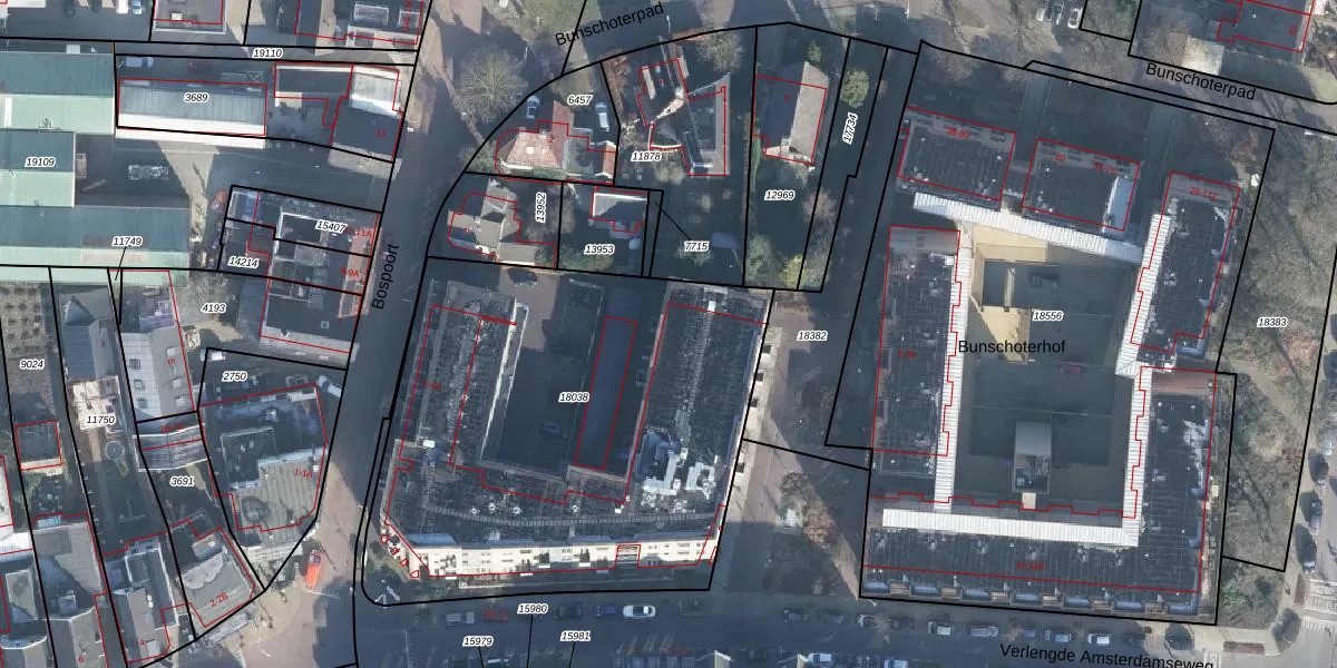 Het perceel waarop Bospoort 2-F-K5 staat heeft een oppervlakte van 2555 m². Dit is een zeer groot perceel. De perceeloppervlakte wordt geregistreerd door het Kadaster. Gedetailleerde informatie over de maten van dit perceel kunt u vinden in het rapport Kadastrale kaart met maatvoering van Bospoort 2-F-K5.