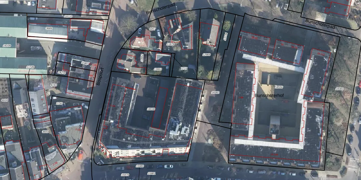 Het perceel waarop Bospoort 2-F-K15 staat heeft een oppervlakte van 2555 m². Dit is een zeer groot perceel. De perceeloppervlakte wordt geregistreerd door het Kadaster. Gedetailleerde informatie over de maten van dit perceel kunt u vinden in het rapport Kadastrale kaart met maatvoering van Bospoort 2-F-K15.