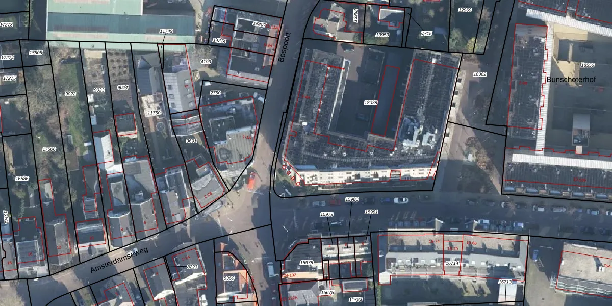 Het perceel waarop Bospoort 4-E staat heeft een oppervlakte van 2555 m². Dit is een zeer groot perceel. De perceeloppervlakte wordt geregistreerd door het Kadaster. Gedetailleerde informatie over de maten van dit perceel kunt u vinden in het rapport Kadastrale kaart met maatvoering van Bospoort 4-E.