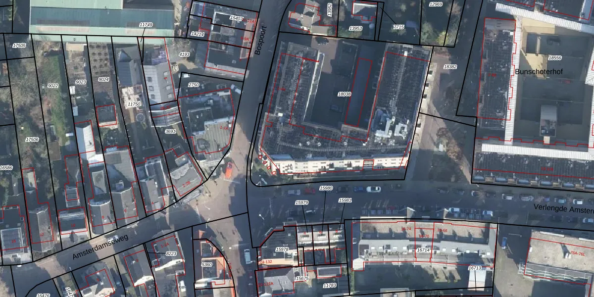 Het perceel waarop Bospoort 4-F staat heeft een oppervlakte van 2555 m². Dit is een zeer groot perceel. De perceeloppervlakte wordt geregistreerd door het Kadaster. Gedetailleerde informatie over de maten van dit perceel kunt u vinden in het rapport Kadastrale kaart met maatvoering van Bospoort 4-F.