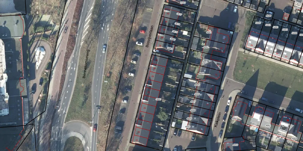 Het perceel waarop Bosvijverlaan 28 staat heeft een oppervlakte van 1320 m². Dit is een zeer groot perceel. De perceeloppervlakte wordt geregistreerd door het Kadaster. Gedetailleerde informatie over de maten van dit perceel kunt u vinden in het rapport Kadastrale kaart met maatvoering van Bosvijverlaan 28.
