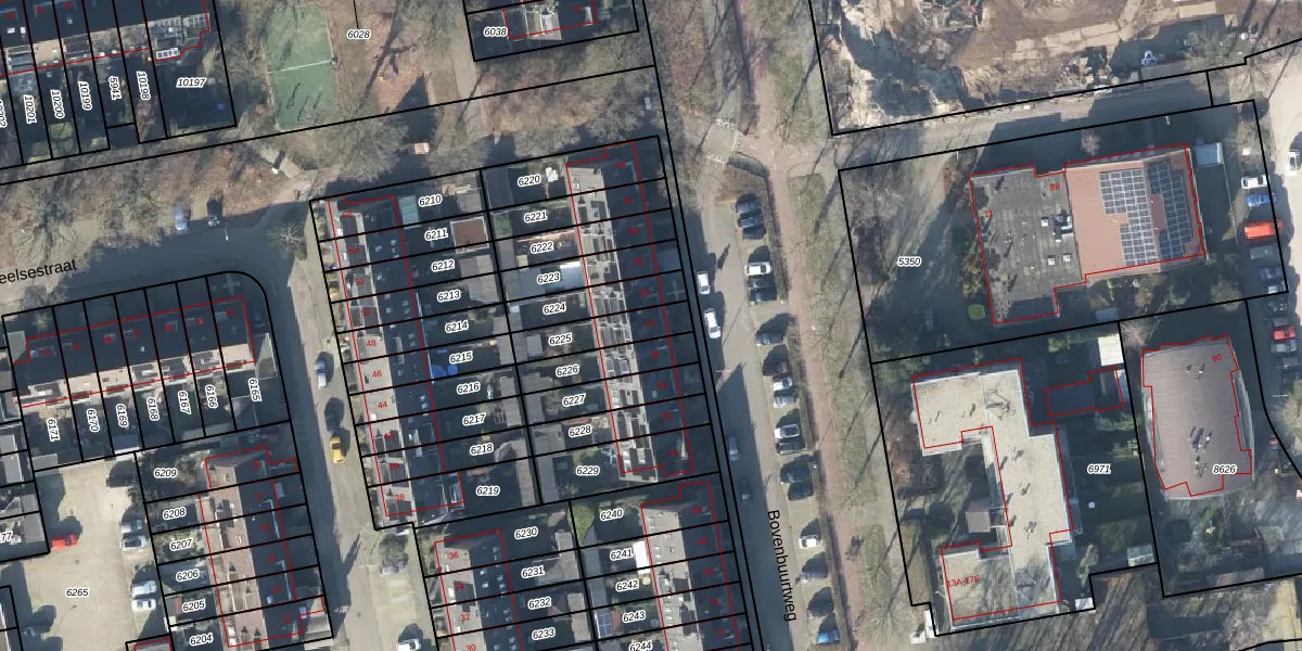 Bovenbuurtweg 54 is gelegen op kadastraal perceel EDE01D6225. Deze kadastrale aanduiding is uniek en wordt gebruikt door het Kadaster om eigendomsrechten en andere zakelijke rechten vast te leggen. Het perceel maakt onderdeel uit van de kadastrale gemeente Ede.
