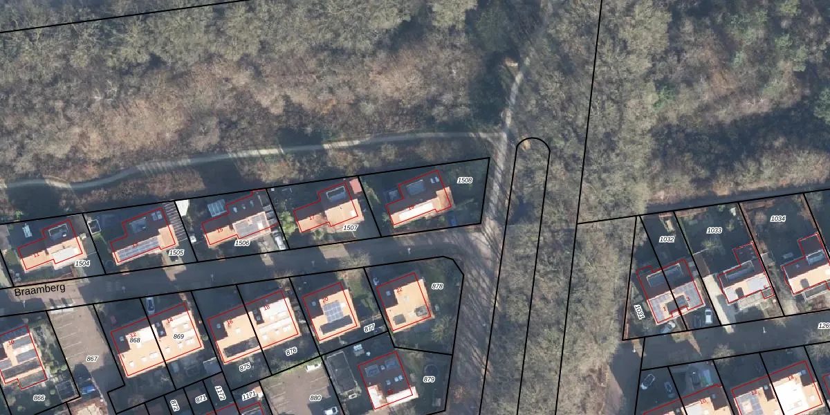 Het perceel waarop Braamberg 19 staat heeft een oppervlakte van 435 m². Dit is een groot perceel. De perceeloppervlakte wordt geregistreerd door het Kadaster. Gedetailleerde informatie over de maten van dit perceel kunt u vinden in het rapport Kadastrale kaart met maatvoering van Braamberg 19.