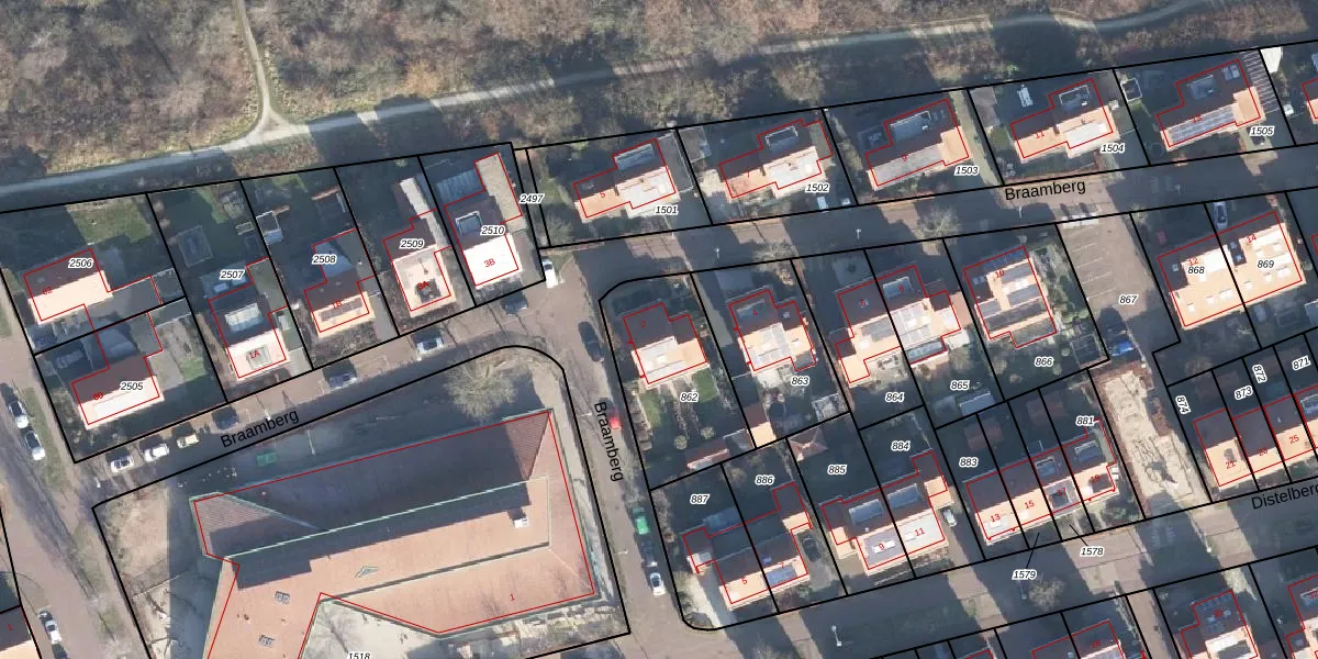 Het perceel waarop Braamberg 2 staat heeft een oppervlakte van 478 m². Dit is een groot perceel. De perceeloppervlakte wordt geregistreerd door het Kadaster. Gedetailleerde informatie over de maten van dit perceel kunt u vinden in het rapport Kadastrale kaart met maatvoering van Braamberg 2.