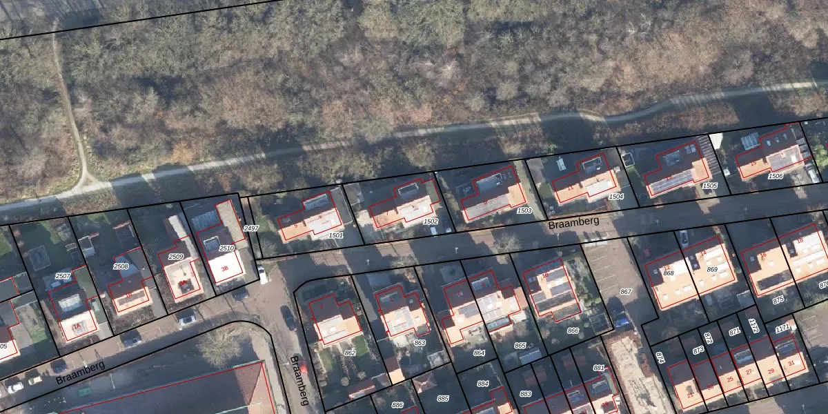 Het perceel waarop Braamberg 7 staat heeft een oppervlakte van 345 m². Dit is een groot perceel. De perceeloppervlakte wordt geregistreerd door het Kadaster. Gedetailleerde informatie over de maten van dit perceel kunt u vinden in het rapport Kadastrale kaart met maatvoering van Braamberg 7.