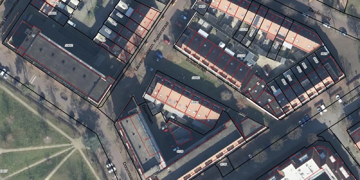 Het perceel waarop Braillestraat 4 staat heeft een oppervlakte van 1045 m². Dit is een zeer groot perceel. De perceeloppervlakte wordt geregistreerd door het Kadaster. Gedetailleerde informatie over de maten van dit perceel kunt u vinden in het rapport Kadastrale kaart met maatvoering van Braillestraat 4.
