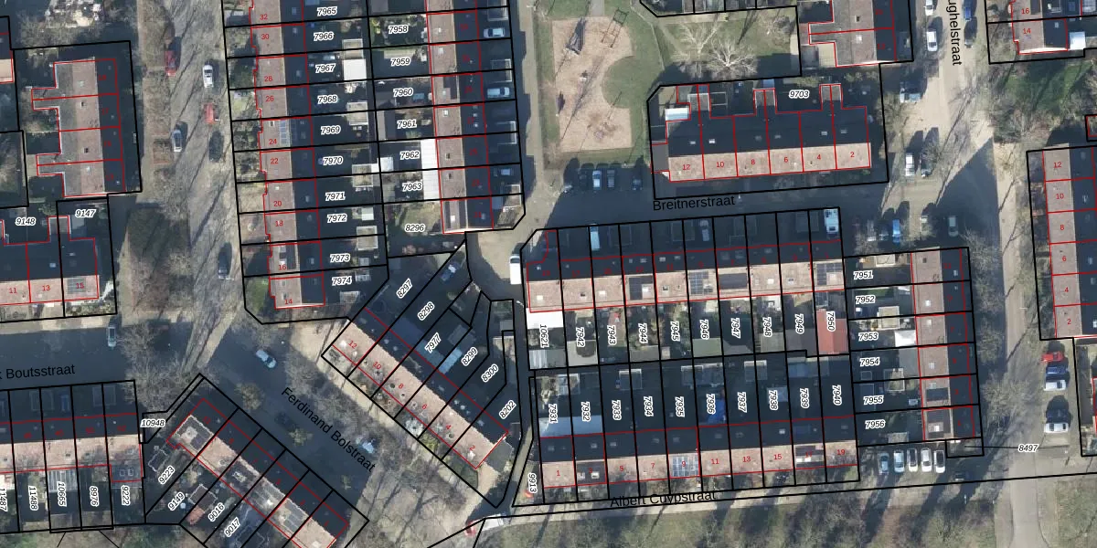 Het perceel waarop Breitnerstraat 19 staat heeft een oppervlakte van 170 m². Dit is een middelgroot perceel. De perceeloppervlakte wordt geregistreerd door het Kadaster. Gedetailleerde informatie over de maten van dit perceel kunt u vinden in het rapport Kadastrale kaart met maatvoering van Breitnerstraat 19.
