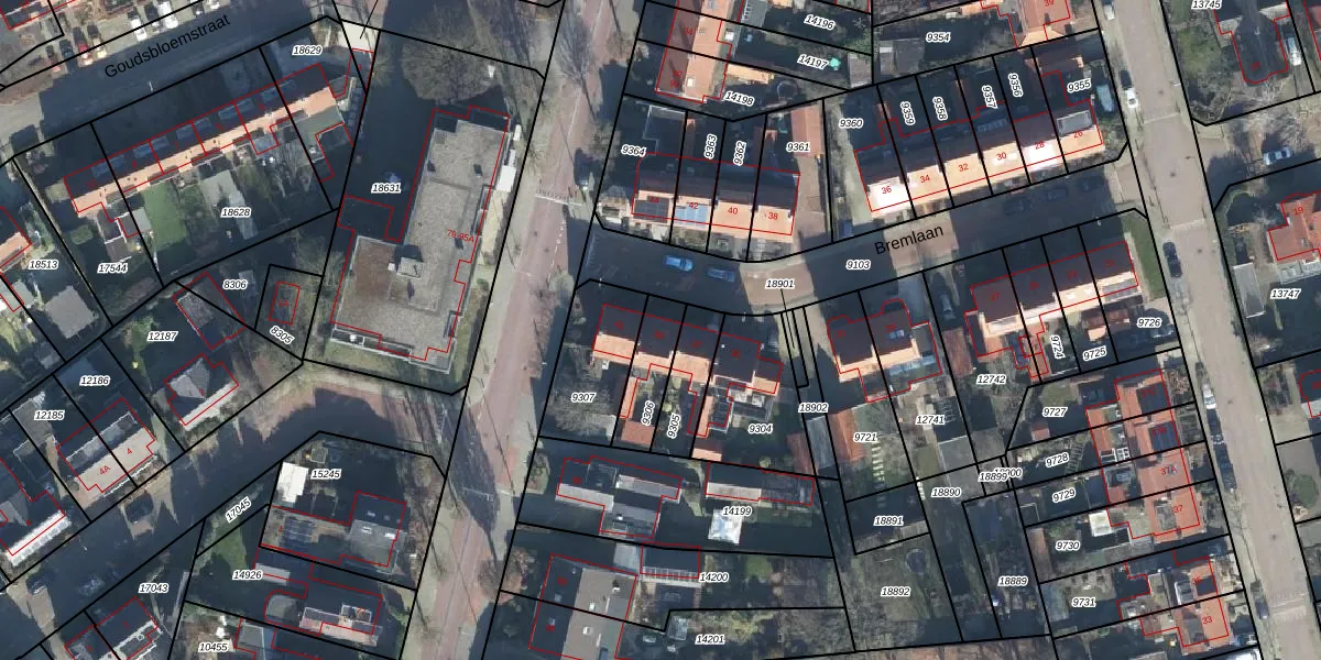Het perceel waarop Bremlaan 39 staat heeft een oppervlakte van 142 m². Dit is een middelgroot perceel. De perceeloppervlakte wordt geregistreerd door het Kadaster. Gedetailleerde informatie over de maten van dit perceel kunt u vinden in het rapport Kadastrale kaart met maatvoering van Bremlaan 39.