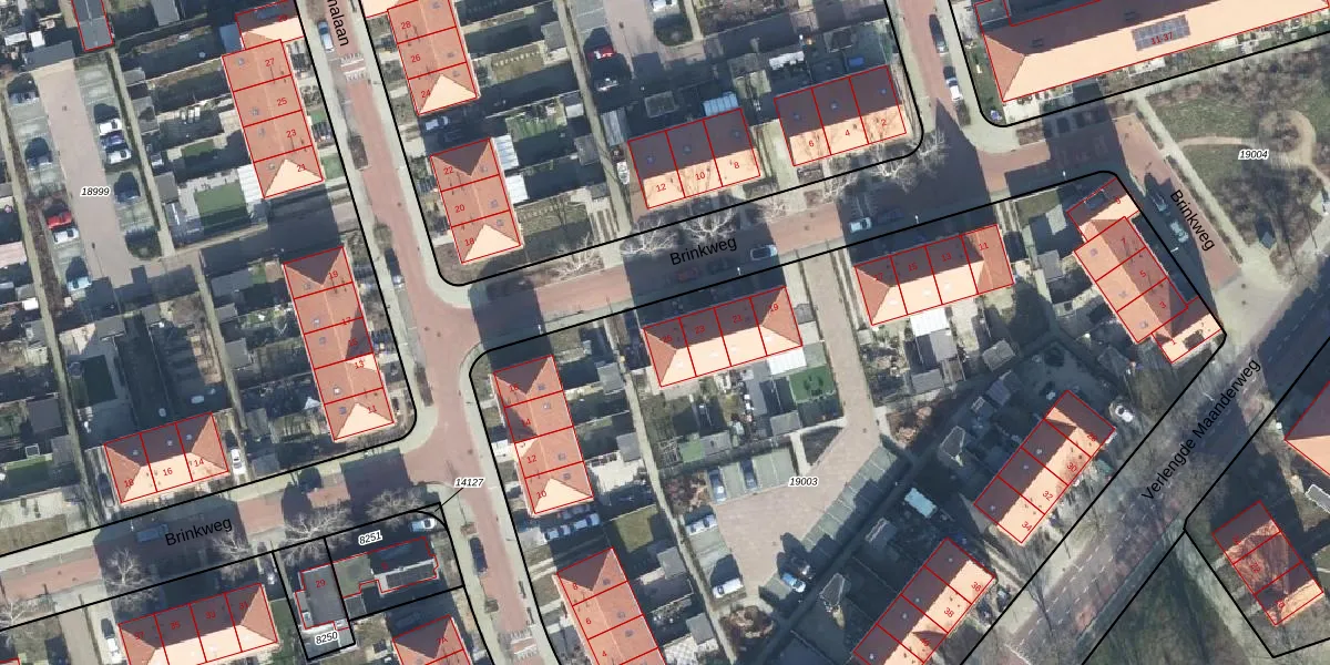 Het perceel waarop Brinkweg 25 staat heeft een oppervlakte van 6685 m². Dit is een zeer groot perceel. De perceeloppervlakte wordt geregistreerd door het Kadaster. Gedetailleerde informatie over de maten van dit perceel kunt u vinden in het rapport Kadastrale kaart met maatvoering van Brinkweg 25.