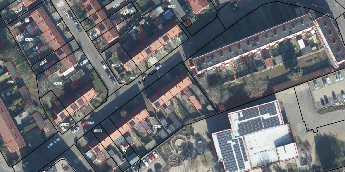 Het perceel waarop Buizerdlaan 29 staat heeft een oppervlakte van 1676 m². Dit is een zeer groot perceel. De perceeloppervlakte wordt geregistreerd door het Kadaster. Gedetailleerde informatie over de maten van dit perceel kunt u vinden in het rapport Kadastrale kaart met maatvoering van Buizerdlaan 29.