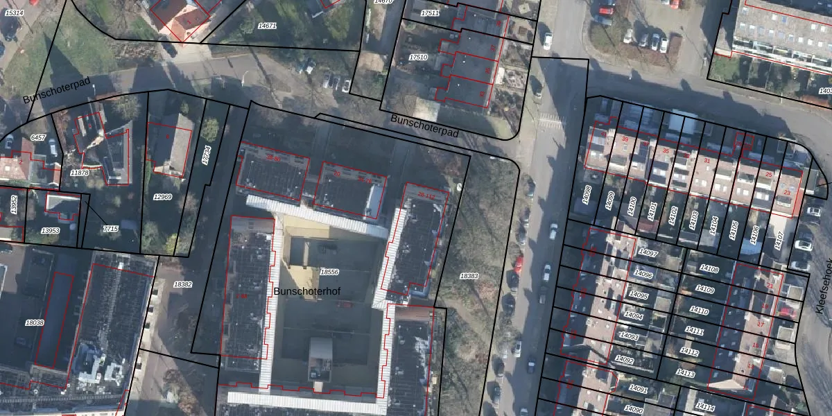 Bunschoterhof 112 is gelegen op kadastraal perceel EDE01K18556. Deze kadastrale aanduiding is uniek en wordt gebruikt door het Kadaster om eigendomsrechten en andere zakelijke rechten vast te leggen. Het perceel maakt onderdeel uit van de kadastrale gemeente Ede.