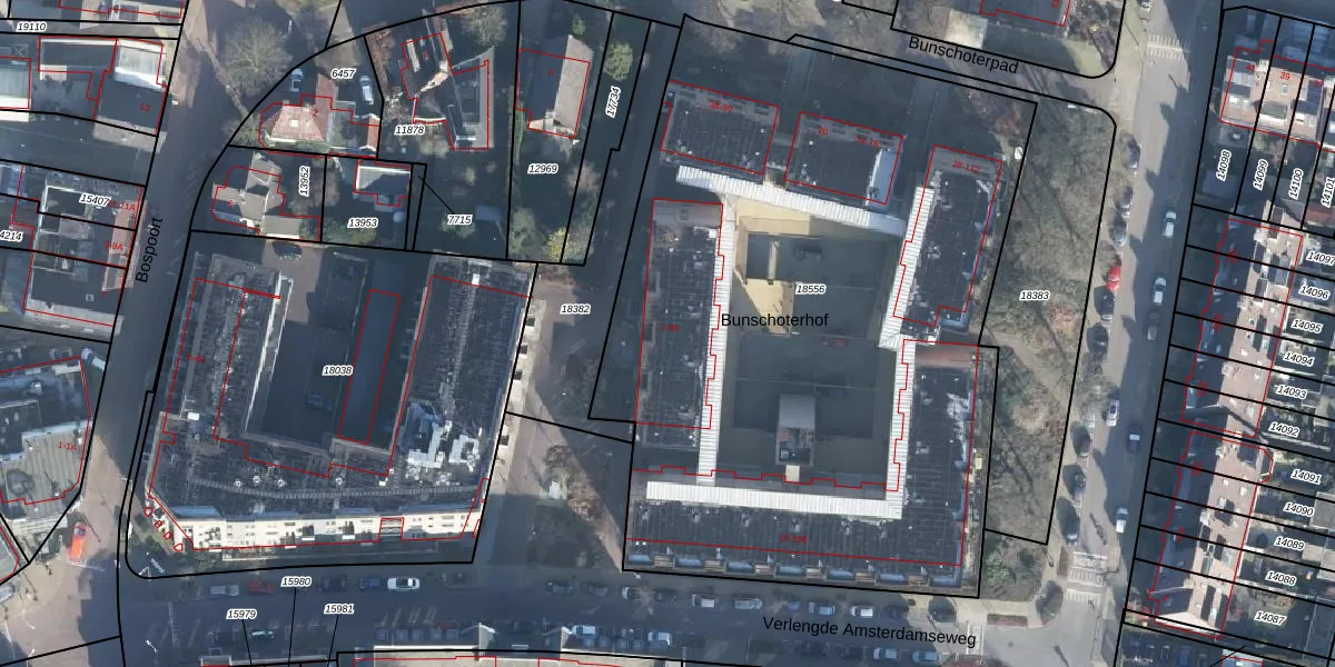 Het perceel waarop Bunschoterhof 46 staat heeft een oppervlakte van 4385 m². Dit is een zeer groot perceel. De perceeloppervlakte wordt geregistreerd door het Kadaster. Gedetailleerde informatie over de maten van dit perceel kunt u vinden in het rapport Kadastrale kaart met maatvoering van Bunschoterhof 46.