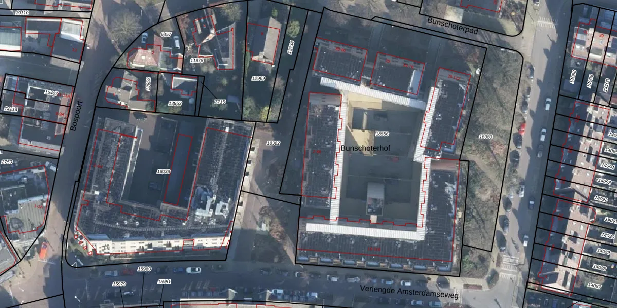 Het perceel waarop Bunschoterhof 6 staat heeft een oppervlakte van 4385 m². Dit is een zeer groot perceel. De perceeloppervlakte wordt geregistreerd door het Kadaster. Gedetailleerde informatie over de maten van dit perceel kunt u vinden in het rapport Kadastrale kaart met maatvoering van Bunschoterhof 6.