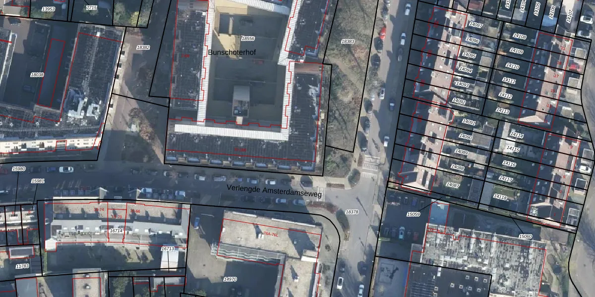 Het perceel waarop Bunschoterhof 60 staat heeft een oppervlakte van 4385 m². Dit is een zeer groot perceel. De perceeloppervlakte wordt geregistreerd door het Kadaster. Gedetailleerde informatie over de maten van dit perceel kunt u vinden in het rapport Kadastrale kaart met maatvoering van Bunschoterhof 60.