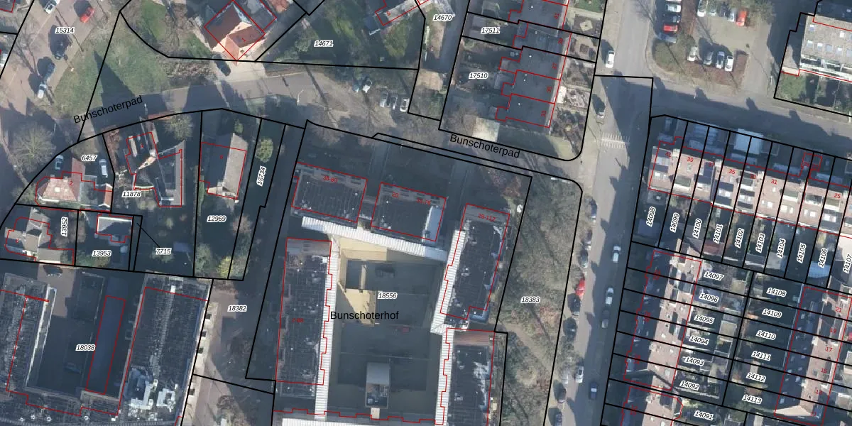 Het perceel waarop Bunschoterhof 74 staat heeft een oppervlakte van 4385 m². Dit is een zeer groot perceel. De perceeloppervlakte wordt geregistreerd door het Kadaster. Gedetailleerde informatie over de maten van dit perceel kunt u vinden in het rapport Kadastrale kaart met maatvoering van Bunschoterhof 74.