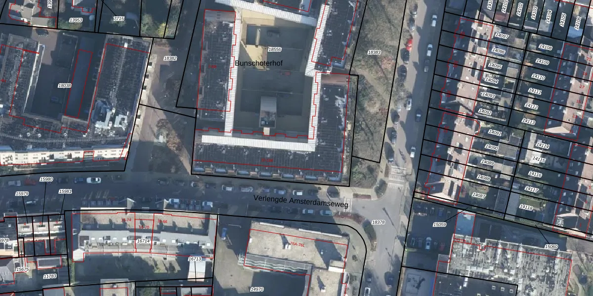 Het perceel waarop Bunschoterhof 98 staat heeft een oppervlakte van 4385 m². Dit is een zeer groot perceel. De perceeloppervlakte wordt geregistreerd door het Kadaster. Gedetailleerde informatie over de maten van dit perceel kunt u vinden in het rapport Kadastrale kaart met maatvoering van Bunschoterhof 98.